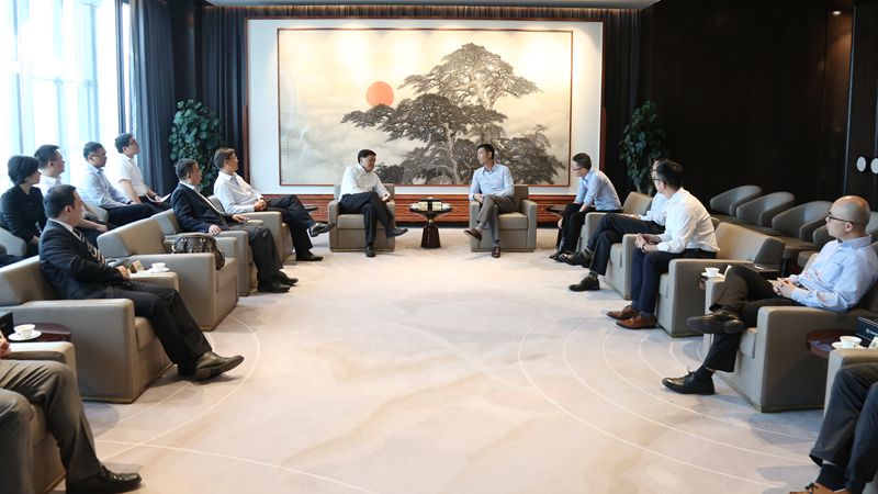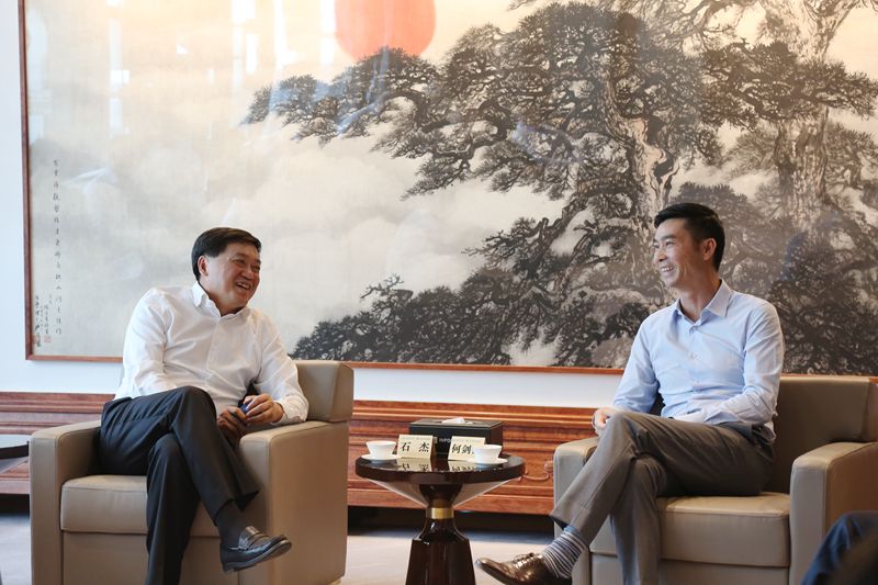 Both sides have a short and pleasant talk before signing ceremony. President He Jianfeng warmly welcome Shi Jie and his entourages and thank Minsheng Bank for their support. Shi Jie said he hoped both sides can have a win-win results in industry development business.